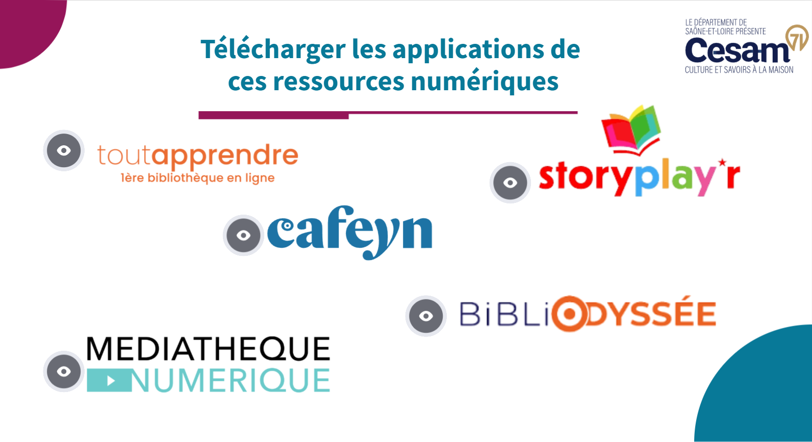 Plusieurs ressources numériques de Cesam71 proposent leur propre application. Chacune d'entre-elles facilitent grandement l'utilisation de leurs services et par conséquence l’expérience à Cesam71....
