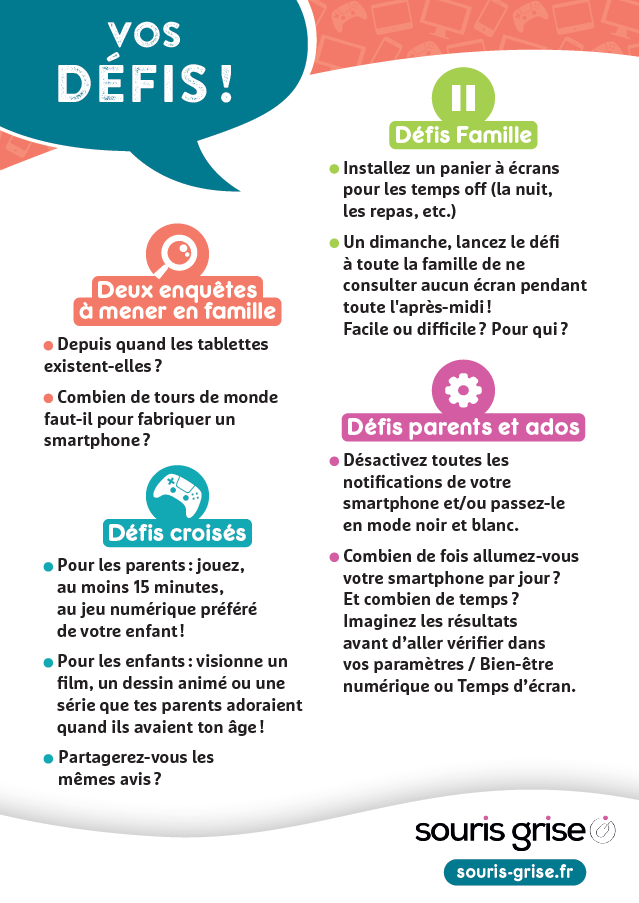 La gestion du temps d'écran à la maison peut également devenir un jeu ; la souris grise vous propose par exemple quelques défis à réaliser en famille.