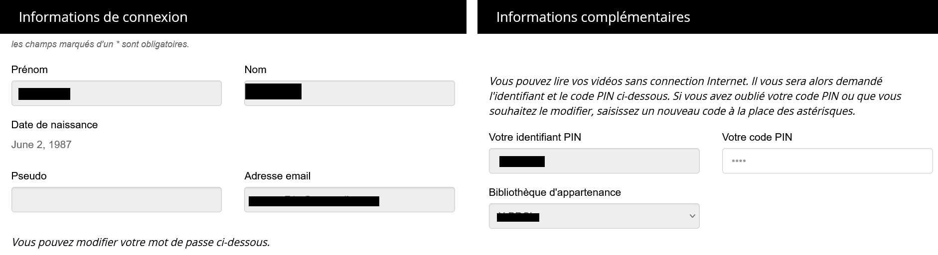 Vous avez ici accès à votre identifiant PIN. Vous pouvez alors définir un code PIN à 4 chiffres qui vous permettra de vous authentifier sur le player de téléchargement. Une fois votre code PIN saisi, n'oubliez pas de cliquer sur valider pour l'enregistrer.